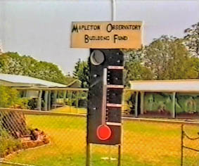- Mapleton Observatory has been in operation since 2002, starting out as a school centenary project. The Education Department wanted community involvement, so after a well-attended meeting a committee was formed. The Observatory took one-and-a-half years of fundraising and another year to build. All the work was done by volunteers within the local community on Saturday mornings. Numerous businesses and individuals helped us out, both with materials and labour. We would like to thank you all for your support (you know who you are), because without you it would have taken us at least another year or two to complete.